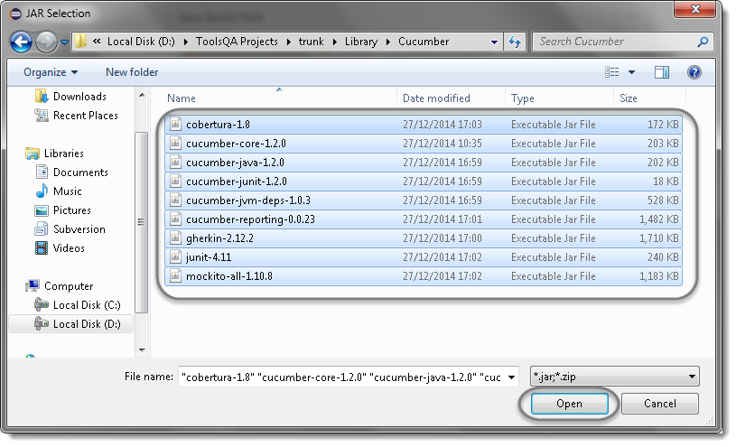 We are almost ready to write the first cucumber selenium test but before that we need to associate all the Selenium & Cucumber jars to the newly created project.
