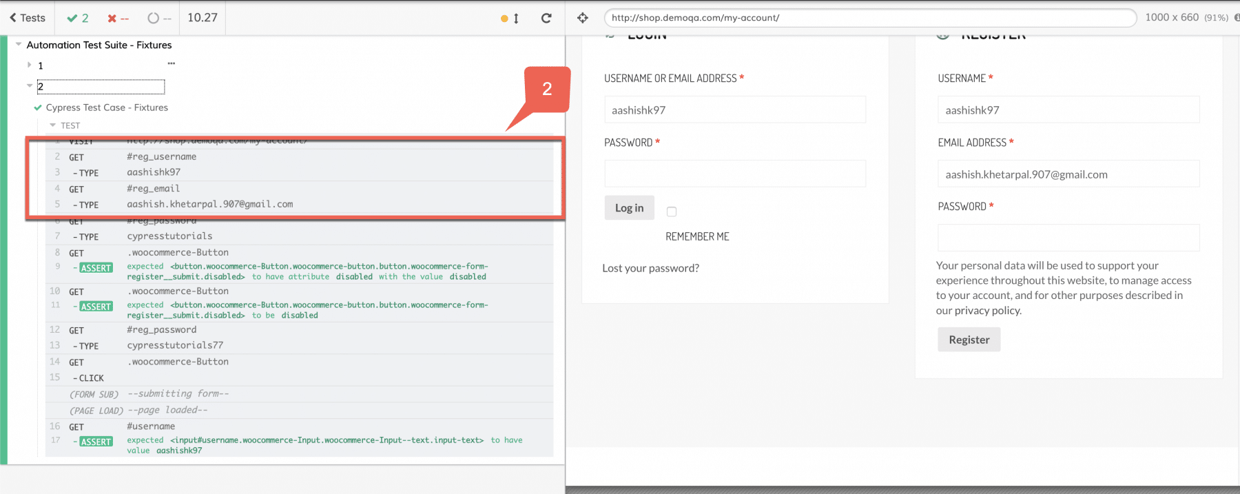 As is evident from the above screenshot, the test successfully read the data from the fixture file and used the same while running the test case.