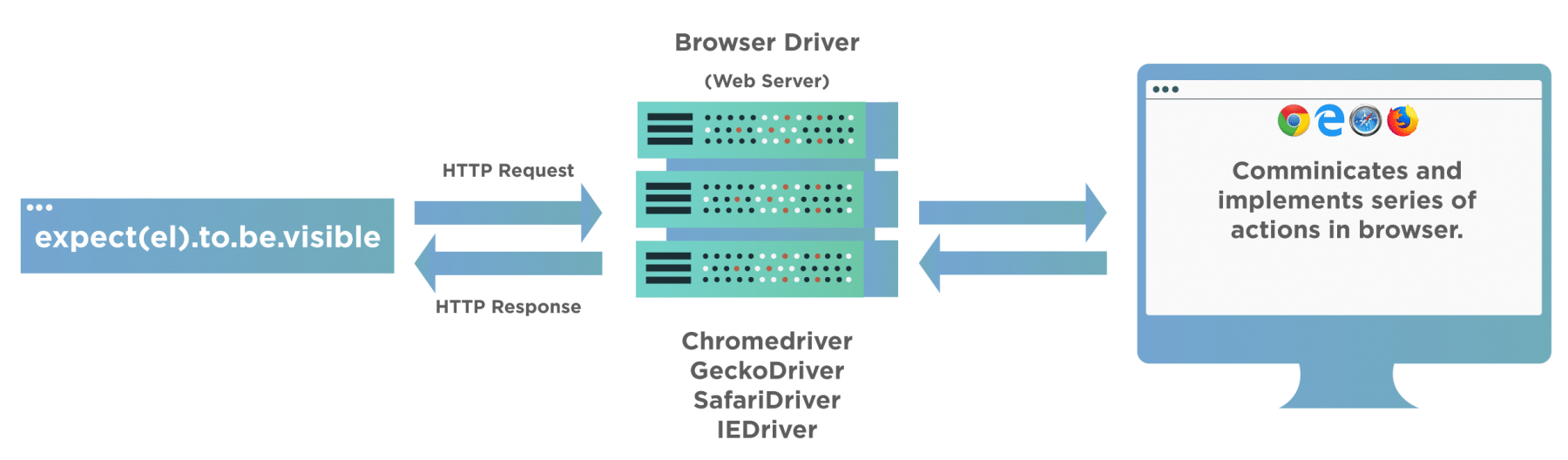 It open doors to new kind of testing along with ultimate control over your application (front and back). Let's see the difference between test execution architecture of Selenium and Cypress with the help of the following images: