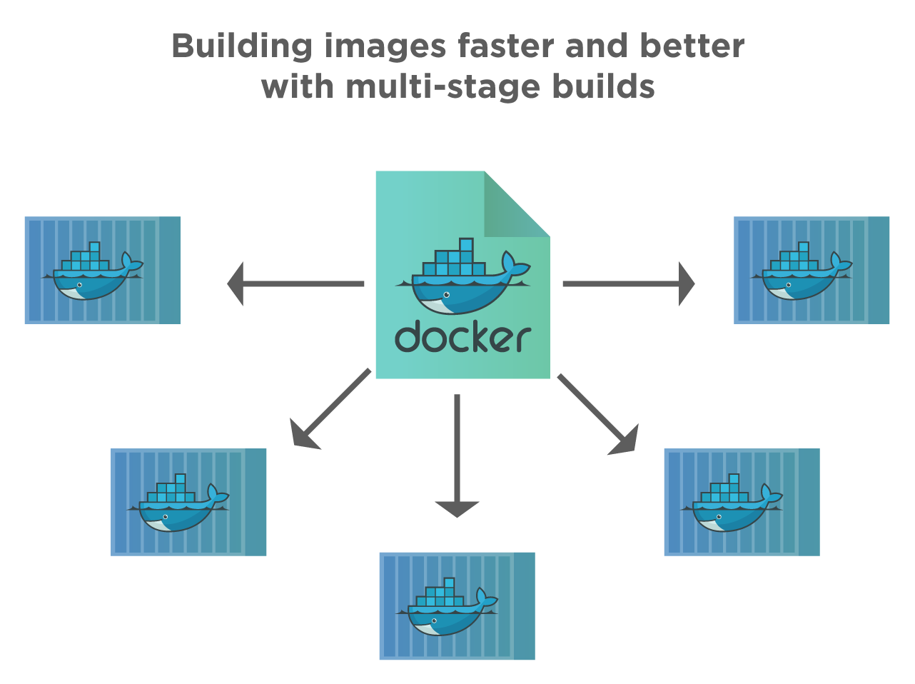 - The multi-stage builds usually work with only one Dockerfile. In this Dockerfile, we use multiple FROM statements to define various stages of builds.