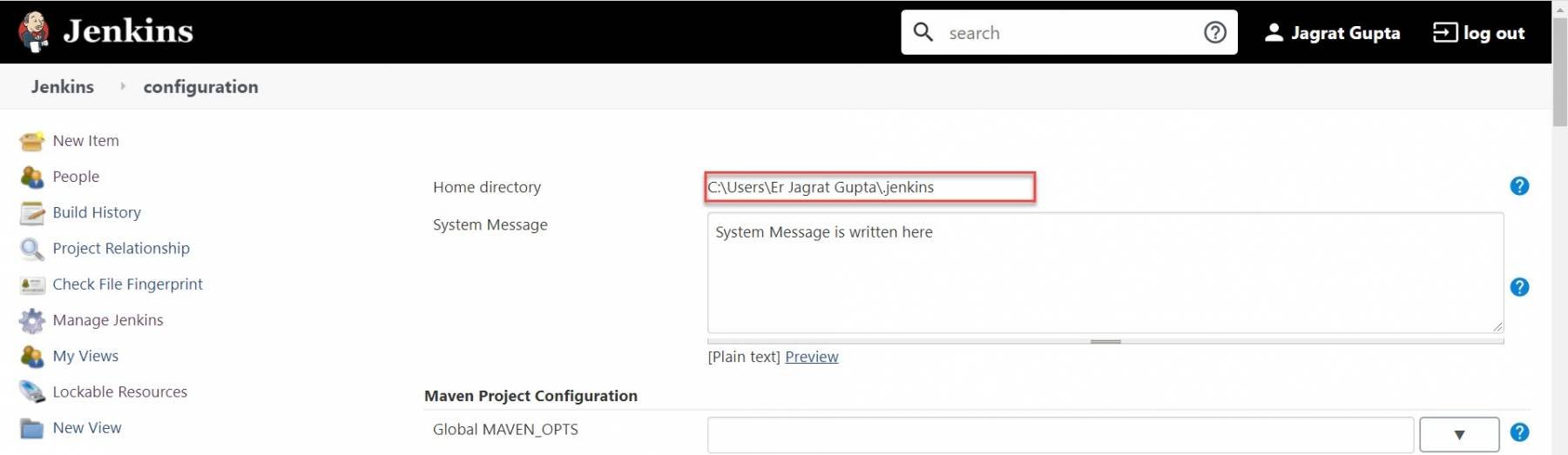 In the previous section, we discussed the concept of the Home directory. Now, in this section, let's see how to configure the home directory in Jenkins? Follow the steps as mentioned below to configure/change the Home Directory: