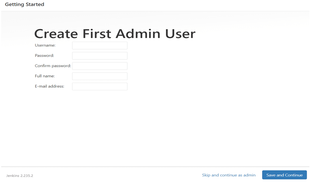 Here you need to put Username, new Password that you want to put, confirm password, Full name, Email-address. After that, click on the “Save and Continue” button. You can choose the option “Skip and continue as Admin” and in this case, you need to put the same administrator password. We always recommend that you need to put in a new password according to your choice.