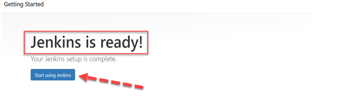 Step 11: After clicking, you will redirect to a new screen. It will display a message like “Jenkins is Ready ”.