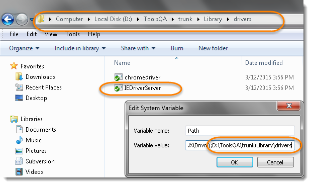 I hope you have gone through the chapter of Running Test in IE Explorer and you know how to download & from where to download IEDriverServer exe. I expect you have downloaded the IEDriverServer and saved it on to your local system at some xyz location.