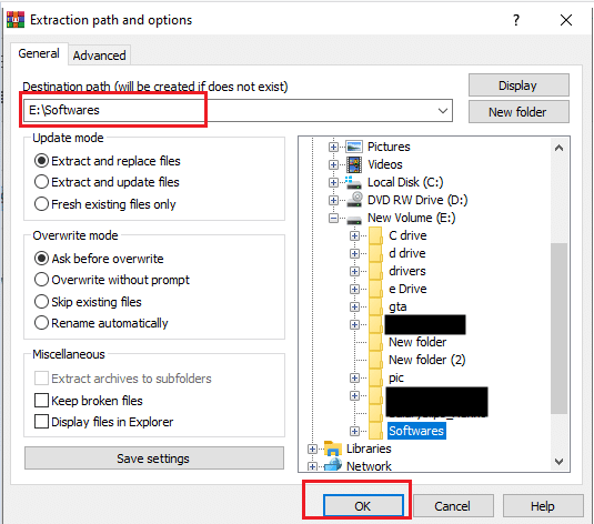 You can select any destination folder on your machine to save the extracted files. We have selected "E:\Softwares" as seen in the below screenshot: