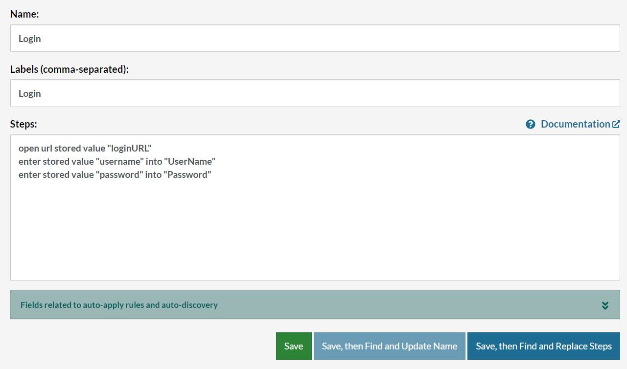 - Steps: The steps that will be replaced when this rule name is encountered in the tests.